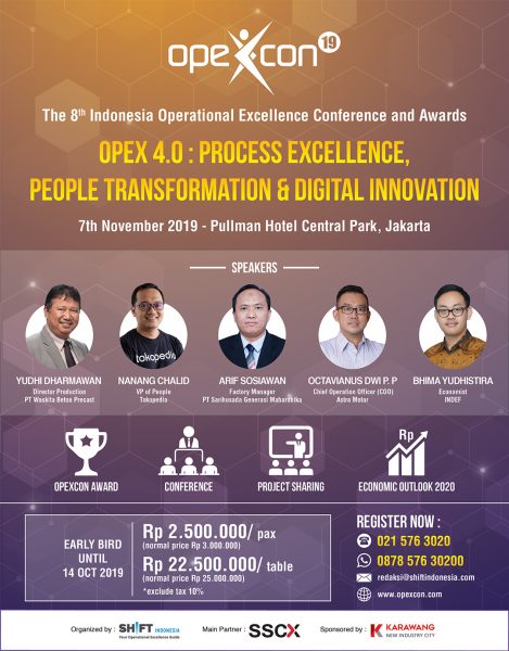 SHIFT Indonesia kembali menggelar konferensi tahunan Indonesia Operational Excellence Conference and Award atau lebih dikenal dengan OPEXCON pada tanggal 7 November 2019, mendatang.