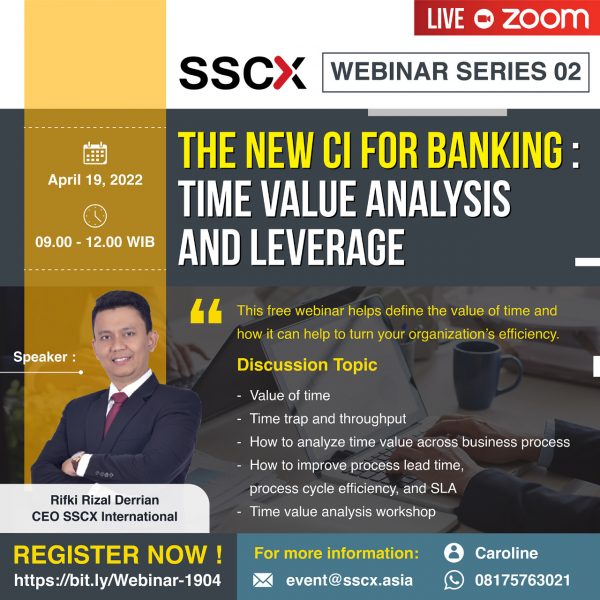 Ya! Hal luar biasa inilah yang akan dibahas langsung oleh CEO SSCX, Rifki Rizal Derrian di acara SSCX Webinar Seri ke-2. Seperti yang telah disebutkan sebelumnya, time value analysis sangat penting karena mengidentifikasi kemungkinan masalah dan menyarankan perbaikan yang harus dilakukan di perusahaan Anda. Proses ini membantu mengurangi biaya, menjaga kualitas, menghilangkan pemborosan, mendorong ide perbaikan, dan meningkatkan nilai merek.