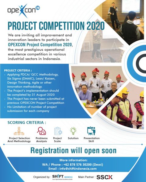 Dear improvement and innovation leaders! di atas adalah kriteria project yang akan dikompetisikan di OPEXCON Project Competition 2020. Kami akan melakukan beberapa penyesuaian di tahun ini sesuai dengan perkembangan Covid-19. Untuk pendaftaran kami akan mulai di bulan July*.